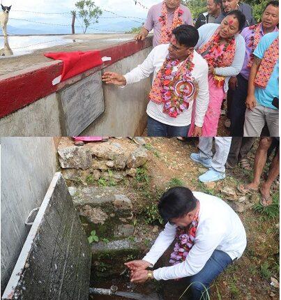 “वि.सं २०७४ को स्थानीय तहको निर्वाचनको प्रचार–प्रसारका लागि गाउँमा जाने क्रममा खानेपानीको अभाव दयनिय देखे, निर्वाचन जिते पनि हारेपनि खानेपानी ल्याउँछु भनेर प्रतिबद्धता जनाएको थिए” नगर प्रमुख थापाले भने–“निर्वाचन सकिए पश्चात् योजनाको काम सुरु भयो, योजना सम्पन्न गरेर पानी खुवाउन पाउँदा खुशी लागेको छ ।”