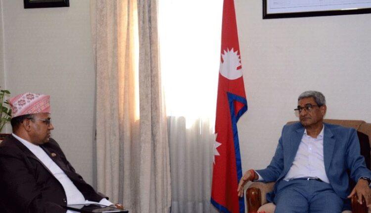 काठमाडौं । गृहमन्त्री रमेश लेखक र संस्कृति, पर्यटन तथा नागरिक उड्डयन मन्त्री बद्रीप्रसाद पाण्डेबीच आज कञ्चनपुरको मझगाउँ विमानस्थल पुनः निर्माण एवं स्तरोन्नतिका विषयमा गृह मन्त्रालयमा छलफल भएको छ ।