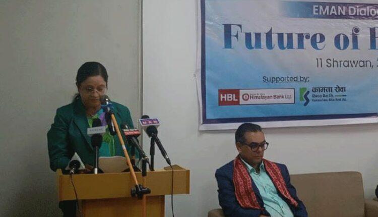 आर्थिक मिडिया एसोसिएसन नेपाल (इमान)द्वारा आज यहाँ आयोजित ‘इमान संवादः फ्युचर अफ बैंकिङ’ छलफलमा उनले बैंकिङ क्षेत्रलाई आधुनिक प्रविधिमैत्री, पारदर्शी र जनता केन्द्रित बनाउँदै सेवा प्रवाहलाई चुस्तदुरुस्त बनाउनुपर्नेमा जोड दिइन् । “डिजिटल वित्तीय सेवाको द्रुत विकास र ग्राहकमैत्री प्रणालीको विकासले बैंकिङ क्षेत्रको भविष्य निर्धारण गर्नेछ” उनले भनिन् ।