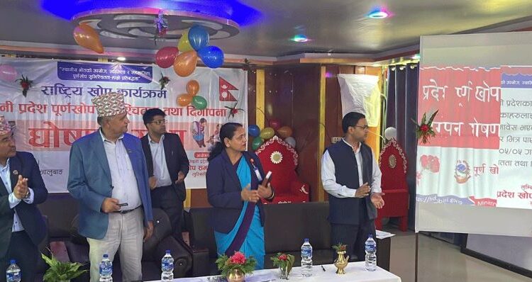 लुम्बिनी प्रदेशका स्वास्थ्य मन्त्री खेमबहादुर सारुले २०७९ भाद्र ३१ गते नेपालकै दोस्रो पूर्णखोप प्रदेश पहिलो पटक घोषणा भएको र त्यसपश्चात् निरन्तर प्रत्येक वर्ष सुनिश्चितता तथा दिगोपना गर्दै आएको बताए। मातृमृत्यूदर, शिशुमृत्यूदर र पोषणलाई स्वास्थ्य मन्त्रालयले विशेष प्राथमिकता दिएर काम गरिरहेको बताउँदै स्वास्थ्यका नकारात्मक सूचकहरूलाई न्यूनीकरण गर्ने विषयमा लुम्बिनी प्रदेशले प्रगति गरिरहेको स्पष्ट पारे ।