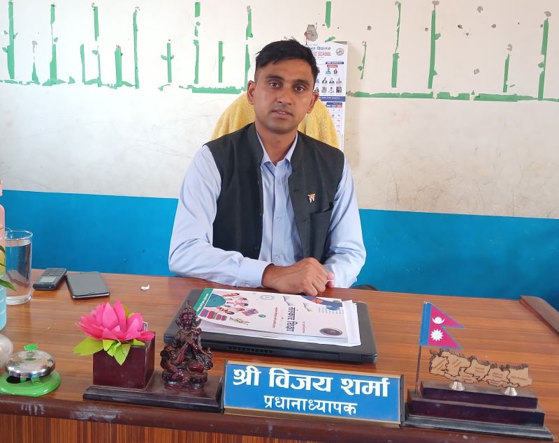 “शैक्षिकस्तर सुधार गर्न समितिले प्रधानाध्यापक, शिक्षक, कर्मचारीलाई कुनै अप्ठ्यारो स्थिति सिर्जना गरेको छैन, यसमा समितिले सहजीकरण गर्दै आइरहेको छ, विद्यालय सुधार गर्न कुशल प्रशासनिक अनुभव भएको प्रअ चाहिने रहेछ, प्रअ विजय शर्माको आगमन भएपछि विद्यालयमा धेरै परिवर्तन आएको छ” उनले भने । हाल विद्यालयमा स्थायी दरबन्दीमा चार जना, निमावि राहत दरबन्दीमा एक जना, प्रावि राहत दरबन्दीमा दुई जना, बालविकास राहत दरबन्दीमा एक जना, शिक्षण निमावि अनुदानमा एक जना, निजि स्रोतबाट सात जना, कार्यालय सहयोगी राहत दरबन्दी एक जना गरी जम्मा १७ जना शिक्षक कर्मचारी कार्यरत छन् । विद्यालयमा कार्यरत शिक्षक कर्मचारीमध्ये दुई जना पुरुष बाहेक सबै महिला रहेका छन् ।