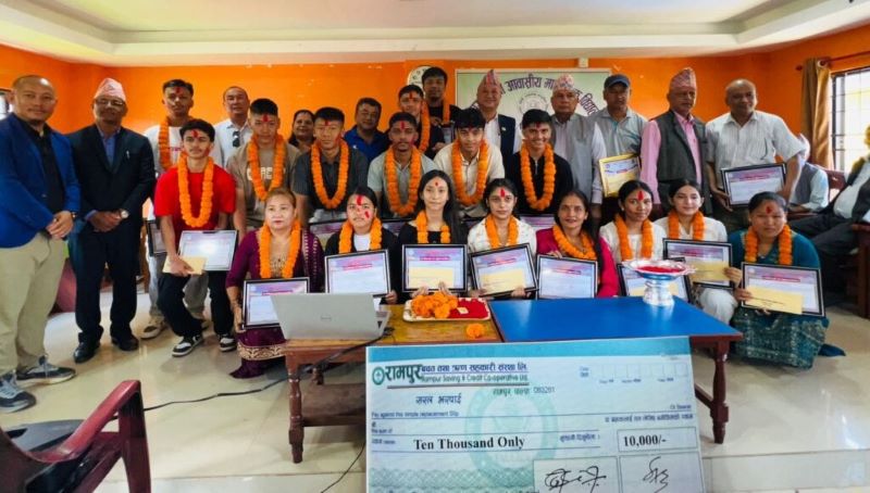 रामपुर (पाल्पा) । रामपुर अंग्रेजी आवासिय माध्यमिक विद्यालय रामपुर नगरपालिका–५ पाल्पाले उत्कृष्ट विद्यार्थीलाई सम्मान गरेको छ ।माध्यमिक शिक्षा परीक्षा (एसईई) र कक्षा १२ मा ए प्लस ग्रेडसहित उत्तीर्ण हुन सफल २१ जना विद्यार्थीलाई नगदसहित सम्मान गरेको हो ।