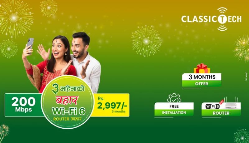 काठमाडौं । इन्टरनेट सेवा प्रदायक क्लासिक टेकले तिहार विशेष अफर सार्वजनिक गरेको छ ।