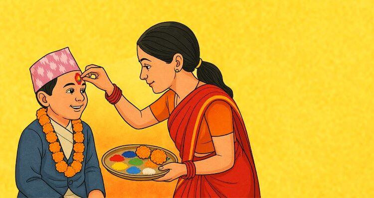 काठमाडौं । यमपञ्चकसमेत भनिने तिहारको मुख्य दिन आज भाइटीका अर्थात् तिहार पर्व धुमधामका साथ मनाइँदैछ । आजका दिन दिदीबहिनीले आफ्ना दाजुभाइलाई श्रद्धा, आस्था र निष्ठाका साथ दीर्घायु, आरोग्य र ऐश्वर्य प्राप्तिको कामना गर्दै पञ्चरङ्गी वा सप्तरङ्गी टीका लगाउने परम्परा रहिआएको छ ।