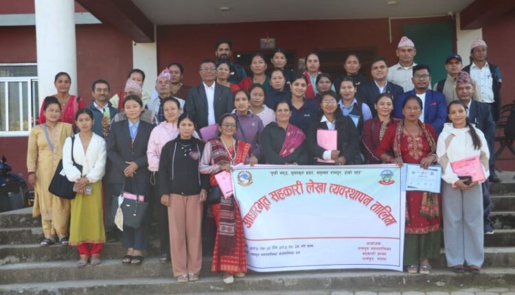 रामपुर (पाल्पा) । पाल्पाको रामपुर नगरपालिकामा आधारभूत सहकारी लेखा व्यवस्थापन सम्बन्धी पाँच दिने तालिम सम्पन्न भएको छ । रामपुर नगरपालिका सहकारी शाखाको आयोजनामा भएको तालिमको सोमबार समापन गरिएको छ ।