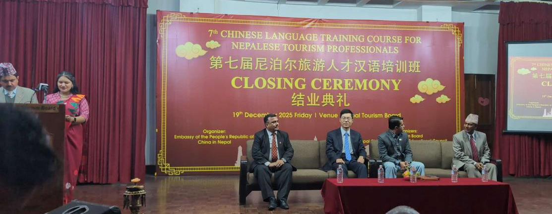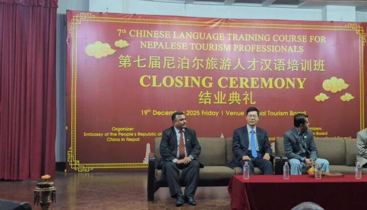 काठमाडौं । नेपालमा चिनियाँ पर्यटक लक्षित जनशक्ति उत्पादनका लागि सञ्चालन गरिएको चिनियाँ भाषा तालिम सम्पन्न भएको छ । नेपाल पर्यटन बोर्डद्वारा काठमाडौंस्थिति चिनियाँ दूतावास र नेपाल-चीन सांस्कृतिक तथा शैक्षिक परिषद् (एनसिसिइसी)सँगको सहकार्यमा नेपालका पर्यटन व्यवसायीहरूका लागि सञ्चालन गरिएको सातौँ चिनियाँ भाषासम्बन्धी तालिम शुक्रबार सम्पन्न भएको हो ।