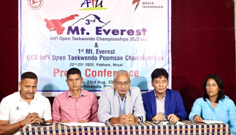 पोखरा । पोखरामा आयोजना हुने ‘तेश्रो माउन्ट एभरेष्ट अन्तर्राष्ट्रिय खुला तेक्वान्दो च्याम्पियनसिप २०२२’ जि–२ र्याकिङ तथा ‘प्रथम जिसिएस माउन्ट एभरेष्ट अन्तर्राष्ट्रिय खुला पुम्से च्याम्पियनसिप–२०२२’ तर्फ गरी १ हजारभन्दा बढि खेलाडीले आफ्नो नामा दर्ता गराएको आयोजकले जनाएको छ ।