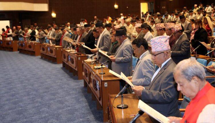 प्रतिनिधिसभामा प्रत्यक्ष निर्वाचित एक सय ६५ र समानुपातिक प्रणालीबाट निर्वाचित एक सय १० गरी कूल दुई सय ७५ सांसद छन्। शपथ समारोहको अगाडि संसद् सचिवालयका महासचिव डा भरतराज गौतमले सबै नवनिर्वाचित सबै सांसदलाई स्वागत, बधाई एवं शुभकामना व्यक्त गरेका थिए । रासस