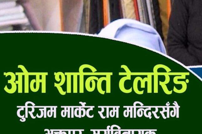 भक्तपुर। भक्तपुर सुर्यबिनायक राममन्दिर नजिकै रहेको ओम शान्ति टेलरिङले अब ६ हजार ५ सय रुपैयाँमै सुट(पाइन्ट तयार गरेर विक्रि गर्ने भएको छ ।