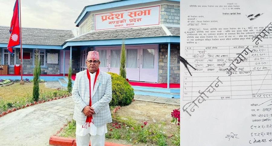 गत मंसिर ४ गते सम्पन्न निर्वाचनमा गण्डकी प्रदेशसभा सदस्यमा निर्वाचित पौडेलले आफूले चुनावमा ८ लाख ८५ हजार ६ सय ६८ खर्च भएको विवरण सामाजिक सञ्जालमार्फत सार्वजानिक गरेका हुन् ।