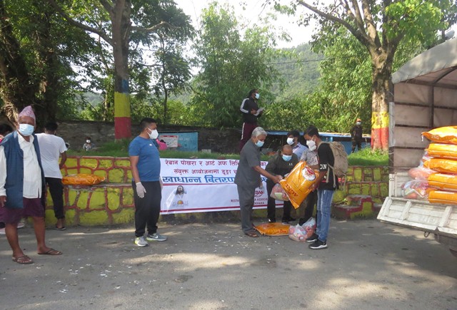 कोरोना संक्रमणको कारण जारी निषेधाज्ञाले पेशा संकटमा परेपछि बिहान बेलुकाको छाक टार्नका लागि समस्यामा परेका चालकलाई राहत वितरण गरिएको रेबान पोखराका अध्यक्ष लक्ष्मण बरालले जानकारी दिए । “लामो समय भयो, निषेधाज्ञा छ ,काम गरेर बहान बेलुकाको छाक टार्न समस्या परेको भन्ने थाहा पाएपछि राहत सामग्री वितरण गरेका हौँ । ”