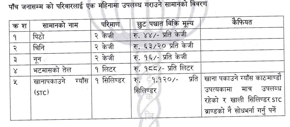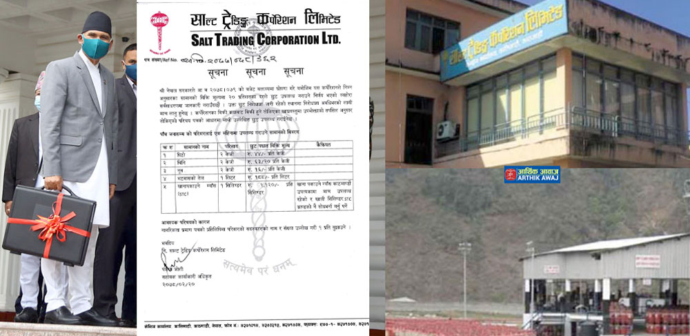 साल्ट ट्रेडिङका प्रमुख कार्यकारी अधिकृत उर्मिला श्रेष्ठले कम्पनीको ग्यास काठमाडौंको बजारमा मात्रै उपलब्ध रहेकाले यहीँ मात्रै छुटमा उपलब्ध गराउन सक्ने बताउँछिन् । छुटमा बिक्री हुने पिठो, चिनी, नुन, भटकासको तेल भने निशेधाज्ञा लागु भएका सबै ठाउँबाट छुटमा किन्न सकिने उनले जानकारी दिइन् ।