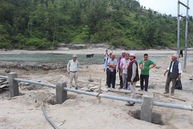 उपभोक्तालाई चाँडो पानी खुवाउने उद्देश्यले बाढीले क्षति गरेर पुनःनिर्माण थालिएको आयोजनाको कोशी प्रदेशका खानेपानी सिँचाइ तथा ऊर्जा मन्त्रालयका सचिव अरुणकुमार झा, मन्त्रालयका महाशाखा प्रमुख मेघराज ज्ञावली, प्रशासन महाशाखा प्रमुख सञ्जयकुमार पोखरेलसहित डिभिजन प्रमुख देवनाथ सिंहले स्थलगत अनुगमन गरेका छन् ।