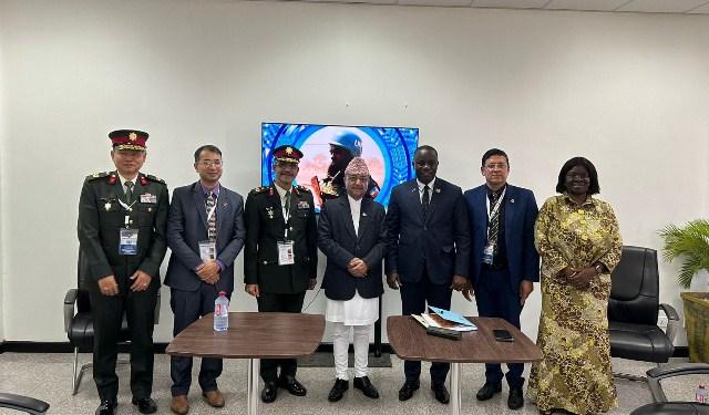 सम्मेलनका अवसरमा उपप्रधानमन्त्री खड्कासँग घानाका रक्षामन्त्री मोमिनिक नितिउअलले शिष्टाचार भेट गरे । रक्षामन्त्री नितिउअलले नेपालबाट सम्मेलनमा भएको उच्च सहभागिताको प्रशंसा गर्दै नेपालले अन्तर्राष्ट्रिय शान्ति स्थापनामा निर्वाह गरेको भूमिकाको सराहना गरे । उनले कतिपय शान्ति ‘मिशन’मा घाना र नेपाली शान्ति सैनिकले मिलेर काम गरेको उल्लेख गर्दै घाना नेपालसँग द्विपक्षीय सम्बन्ध विस्तार गर्न र बहुपक्षीय मञ्चहरूमा सहकार्य गर्न सधै तत्पर रहेको बताए ।