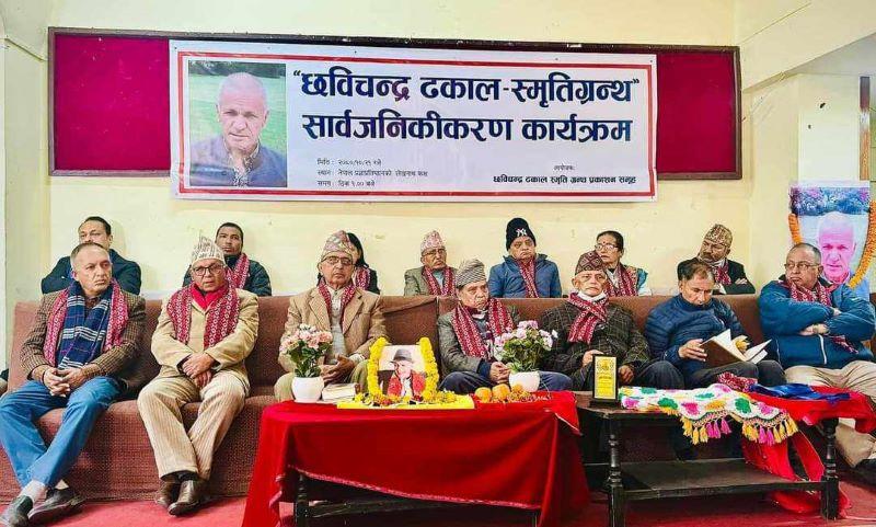 काठमाडौं । नेपाली कम्युनिष्ट आन्दोलनको दोस्रो पुस्ताका क्रान्तिकारी एवं समाज सेवामा निरन्तर संलग्न रहेका छविचन्द्र ढकालको सम्झनामा प्रकाशित स्मृतिग्रन्थ आईतवार सार्वजनिक गरिएको छ ।