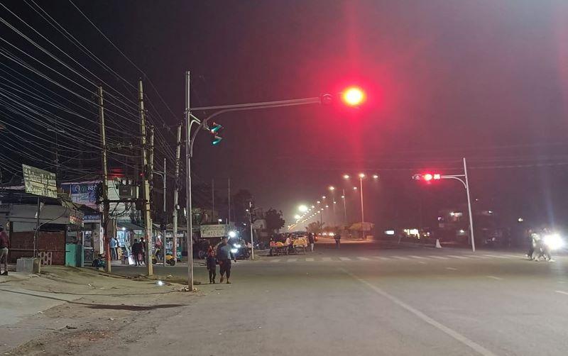 खजुरा (बाँके) । नेपालगञ्जका विभिन्न पाँचवटा स्थानमा ट्राफिक लाइट जडान । शनिबार राती गणेशमान चोकमा ट्राफिक लाइट बालेर परीक्षण गरिएको छ । तस्बिर : राकेशकुमार मिश्र/रासस