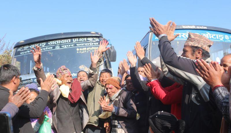खोटाङ दिक्तेलको खाल्लेमा बस पुगेपछि स्थानीय उत्साहित