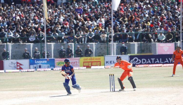 कीर्तिपुरस्थित त्रिभुवन विश्वविद्यालयको क्रिकेट मैदानमा टस जितेर पहिले ब्याटिङ गरेको नेपालले निर्धारित २० ओभरमा आठ विकेटको क्षतिमा १८४ रन बनायो ।