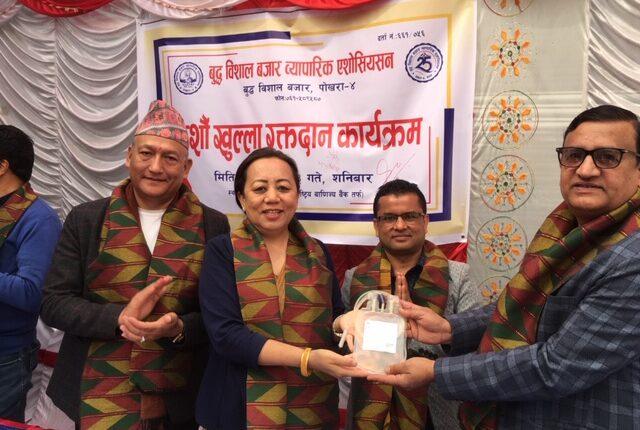 रक्त संचार केन्द्र पोखराका वरिष्ठ प्राविधिक महेन्द्र केसीको टोलिले प्राविधिक सेवा दिएको कार्यक्रम बुद्ध विशाल बजार व्यापारिक एशोसियसनका अध्यक्ष ईन्द्रराज अर्यालको अध्यक्षतामा भएको हो ।