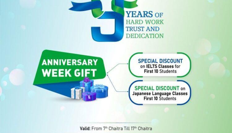 संस्थाले ९ औँ वार्षिकोत्सवको अवसरमा चैत ७ गतेदेखि १७ गतेसम्म विद्यार्थीलाई अंग्रेजी र जापानीज भाषा तयारी कक्षामा विशेष छुटको व्यवस्था गरेको जनाएको छ ।