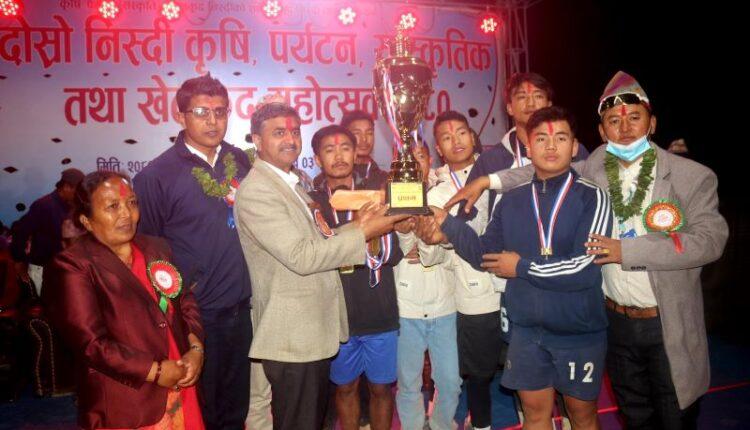 प्रतिनिधि सभा सदस्य ठाकुरप्रसाद गैरेले पुरस्कार वितरण गरे । विजेता टोलीले नगद रु एक लाख ३० हजार, द्वितीयले रु ८० हजार, तृतीयले ५० हजार र सान्त्वना टोलीले रु २५ हजारसहित ट्रफी, मेडल र प्रमाणपत्र प्राप्त गरेका छन् ।