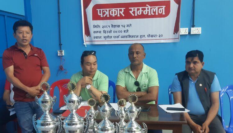पोखरा महानगरपालिका–२९ को संरक्षकत्व एवं मुख्य प्रायोजन रहेको प्रतियोगिता पोखरा महानगरपालिका–३० स्थित भूगोल पार्कको ब्याडमिन्टन हलमा सञ्चालन हुने बुधबार आयोजित पत्रकार सम्मेलनमा क्लबका अध्यक्ष शरणकुमार प्रधानले जानकारी दिए ।