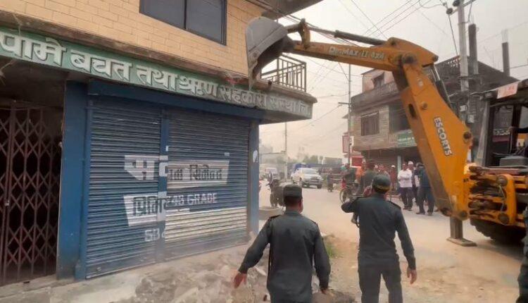 पामेका अनधिकृत संरचनामा पोखरा महानगरको डोजर
