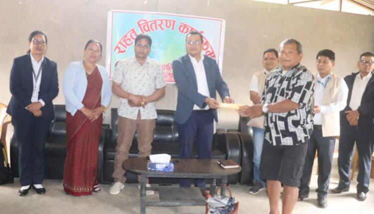 रामपुर नगरपालिका वडा नं. ४ र ५ का ६ घर र पूर्वखोला गाउँपालिका वडा नं. ६ का ९ घर परिवारलाई राहत रकम प्रदान गरेको हो । रामपुर नगरपालिका भित्रका पिडितलाई वडा नं. ४ र ५ मा छुट्टाछुटै कार्यक्रम गरी राहत रकम प्रदान गरिएको छ ।