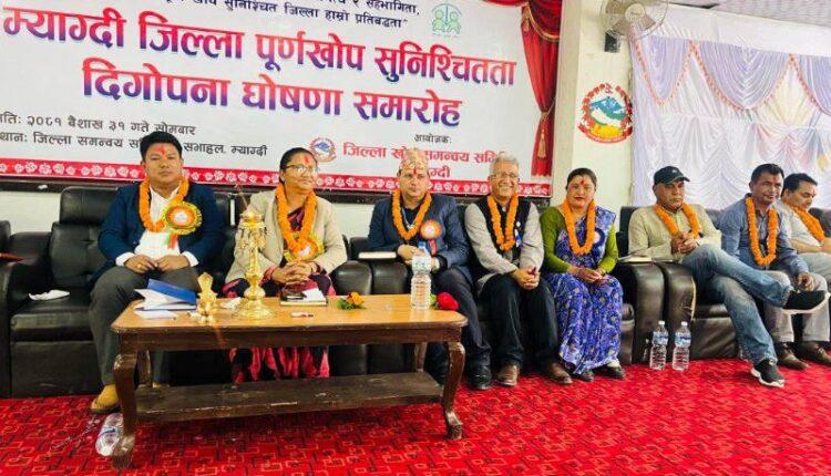 म्याग्दी । म्याग्दीलाई पाँच वर्षमुनिका बालबालिकाहरुले पूर्ण खोप पाएको सुनिश्चितता तथा दिगोपना जिल्ला घोषणा गरिएको छ । ६ वटा स्थानीय तह र ४५ वटा वडा रहेको म्याग्दीका सबै लक्षित बालबालिकाले तोकिएको खोपको सबै मात्रा लगाएपछि सोमबार एक समारोहका बीच पूर्णखोप घोषणा गरिएको हो ।