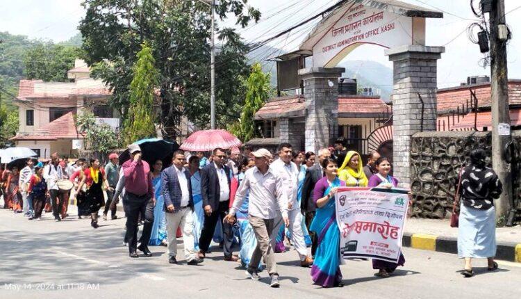 पोखरा । पोखरा महानगरपालिका वडा नं. ७ पूर्ण खोप सुनिश्चित वडा घोषणा गरिएको छ । मंगलबार प्रभातफेरी सहित पूर्ण खोप सुनिश्चितता वडा घोषणा गरिएको हो ।