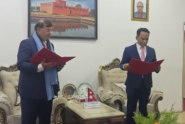नवनियुक्त अध्यक्ष अग्रवालले बिहीबार नेपाल राष्ट्र बैंकका गर्भनर प्रा. डा. विश्वनाथ पौडेलबाट पद तथा गोपनियताको सपथ ग्रहण गरेका छन् ।
