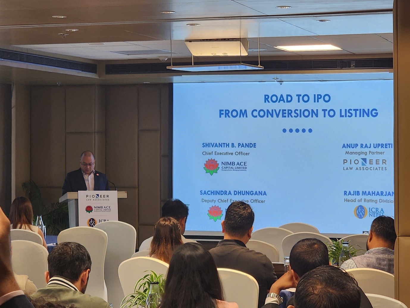 काठमाडौं ।  एनआईएमबि एस क्यापिटल लिमिटेडले पायोनियर ल असोसिएट्स र इक्रा नेपाल लिमिटेड सँगको सहकार्यमा “रोड टु आईपीओ” नामक कार्यशालाको सफल आयोजन गरेको छ । कार्यक्रम २०२५ अगस्ट २९ मा काठमाडौंको एक प्रतिष्ठित स्थलमा सम्पन्न भएको हो ।