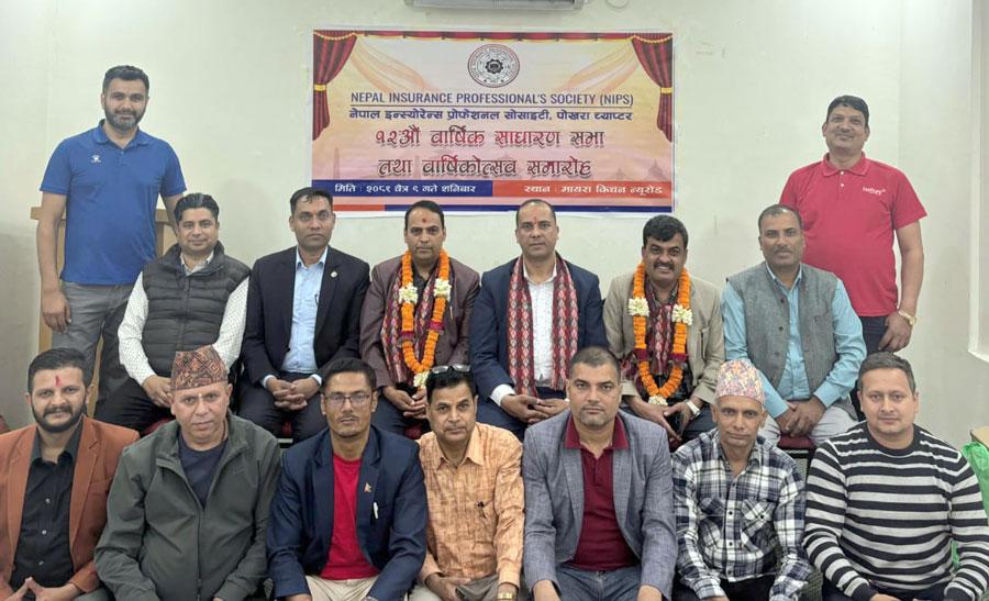 पोखरा । निप्स पोखरा च्याप्टरको १२औं वार्षिक साधारण सभा तथा वार्षिकोत्सव कार्यक्रम शनिबार सम्पन्न भएको छ । निप्स पोखरा च्याप्टरका अध्यक्ष बद्रीनाथ पौडेलको अध्यक्षता तथा बीमा प्राधिकरण गण्डकी प्रदेश प्रमुख केशवप्रसाद दाहालको प्रमुख अतिथ्यता र बीमा प्राधिकरण उपनिर्देशक शम्भुप्रसाद मिश्रको विशिष्ट आतिथ्यतामा कार्यक्रम भएको हो ।