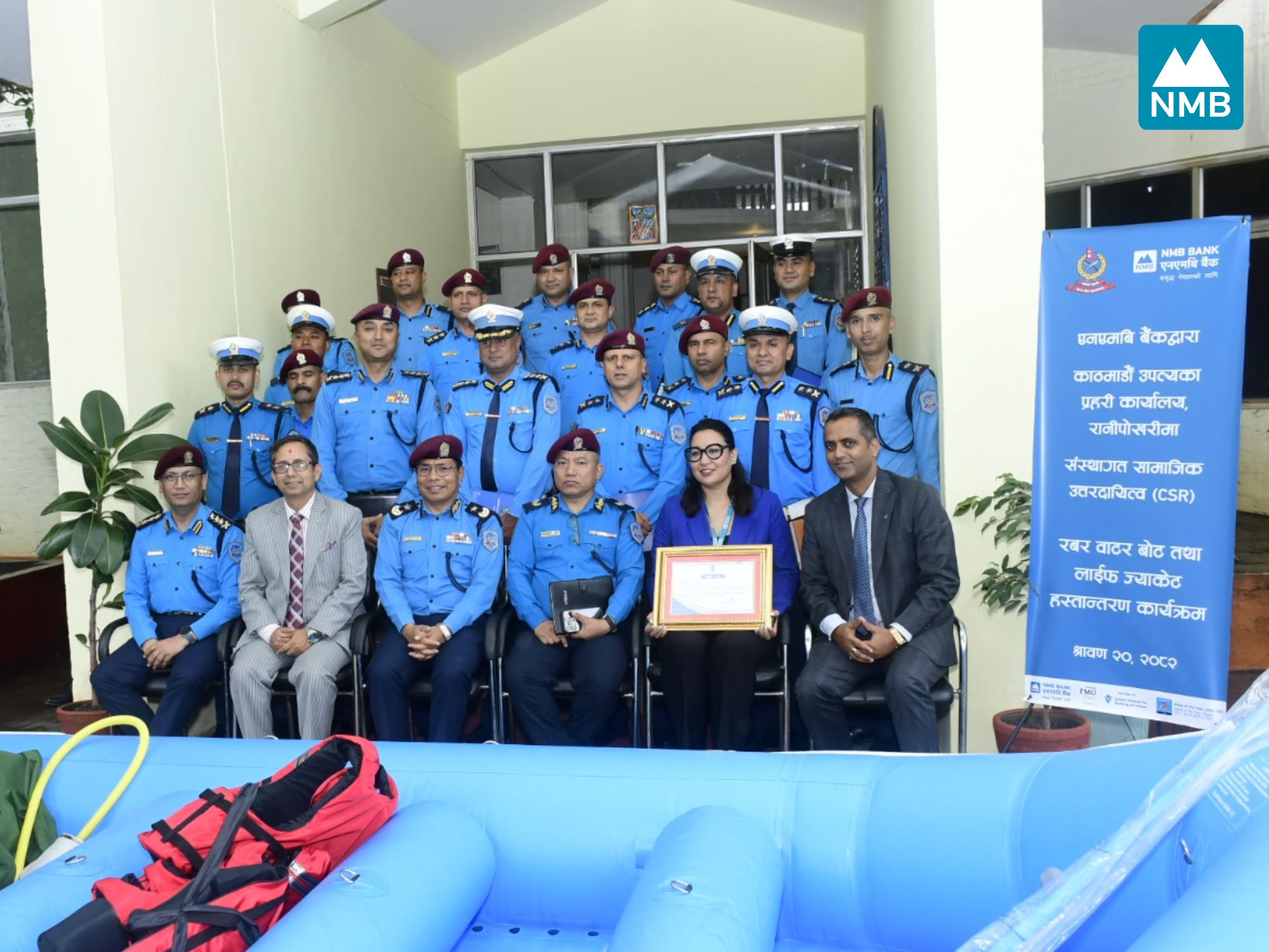 कार्यक्रममा एनएमबि बैंकका प्रमुख कार्यकारी अधिकृत गोविन्द भट्टले काठमाडौं उपत्यका प्रहरी कार्यालयका प्रमुख प्रहरी अतिरिक्त महानिरीक्षक टेक बहादुर तामाङलाई ती सामग्रीहरू औपचारिक रूपमा हस्तान्तरण गरे। हस्तान्तरण गरिएका सामग्रीमा राफ्ट र लाइफ ज्याकेटसहितका बाढी, डुबान र जलजन्य विपद् व्यवस्थापनमा प्रयोग हुने अन्य अत्यावश्यक उपकरणहरू समावेश छन् ।
