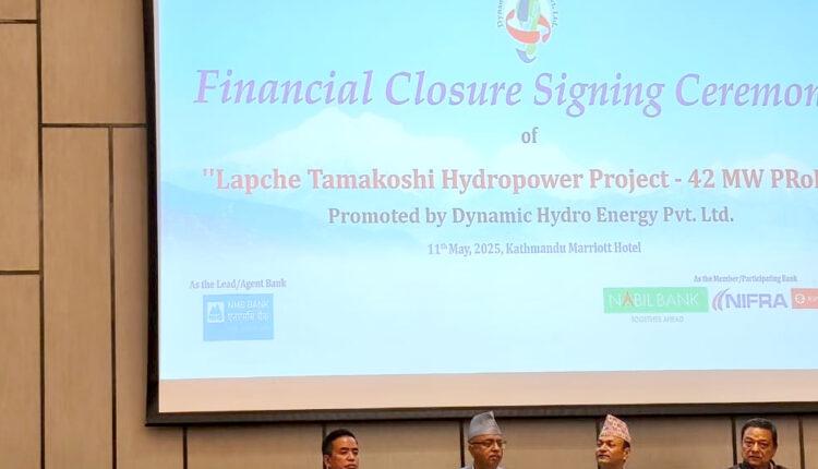 एनएमबि बैंकको अगुवाइमा दोलखा जिल्लाको विगु गाउँपालिकामा अवस्थित ४२ मेगावाट क्षमताको लाप्चे तामाकोशी जलविद्युत आयोजनामा ऋण लगानी गर्न वित्तीय व्यवस्थापन भएको हो। यस आयोजनामा एनएमबि बैंक अगुवा बैंकको रुपमा रहेको छ भने सह-वित्तीयकरण सदस्य बैंकहरुमा नबिल बैंक लिमिटेड, नेपाल इन्फ्रास्ट्रक्चर बैंक लिमिटेड, र एभरेष्ट बैंक लिमिटेड रहेका छन्। डायनामिक हाइड्रो ईनर्जी प्रा. लि. द्वारा प्रवर्द्धित यस आयोजनाको करिब लागत रु. ७ अर्ब रहने जानकारी गराइएको छ, जसमा बैंक तथा वित्तीय संस्थाहरुको ऋण लगानी रु. ५ अर्ब २५ करोड रहनेछ। नेपाल विद्युत प्राधिकरणले आयोजनाको निर्माणका लागि विद्युत खरिद सम्झौता (पीपीए) समेत गरिसकेको छ।