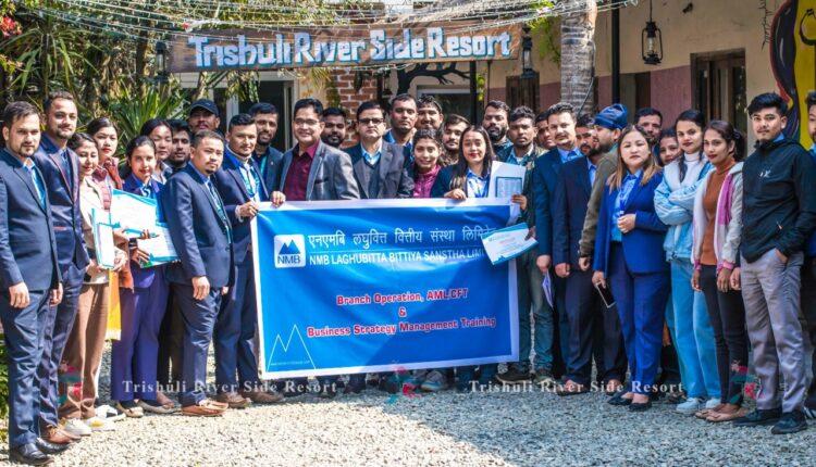 पोखरा । एनएमबि लघुवित्त वित्तीय संस्थाले प्रदेश नं ३ धुलिखेल प्रादेशिक कार्यालय अन्तर्गतका विभिन्न २२ वटा शाखाका शाखा प्रमुख र कर्मचारीहरुलाई लक्षित गरी २ दिने शाखा सञ्चालन, सम्पत्ति शुद्धीकरण र व्यावसायिक रणनीति व्यवस्थापन तालिम सम्पन्न गरेको छ ।