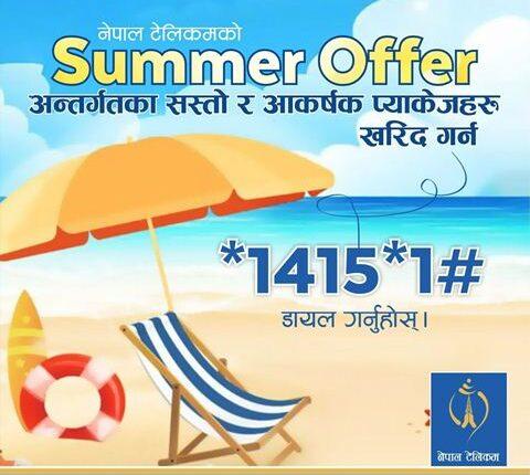 काठमाडौं । नेपाल टेलिकमले आज शुक्रबारदेखि लागु हुनेगरी समर अफर उपलब्ध गराएको छ । यसमा सेवाग्राहीको रुची र चाहना बमोजिम केही नयाँ प्याकेजसहितका अफरहरु उपलब्ध गराइएको बताइएको छ । त्यसैगरी एफटीटीएच, नमस्ते वाईफाई, सीयूजी लगायत विभिन्न भ्वाइस तथा डाटा प्याकेजहरुलाई थप आकर्षक बनाइएको छ ।