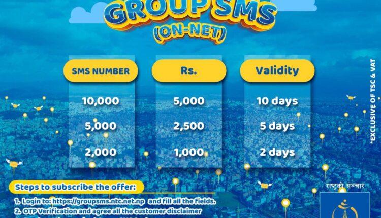 काठमाडौं । नेपाल टेलिकमले एकैपटकमा एउटै सन्देश धेरै मोबाइल नम्बरमा पठाउन सकिने गरी ल्याएको सामूहिक सन्देश (Group SMS) सेवा प्रभावकारी बनेको छ ।