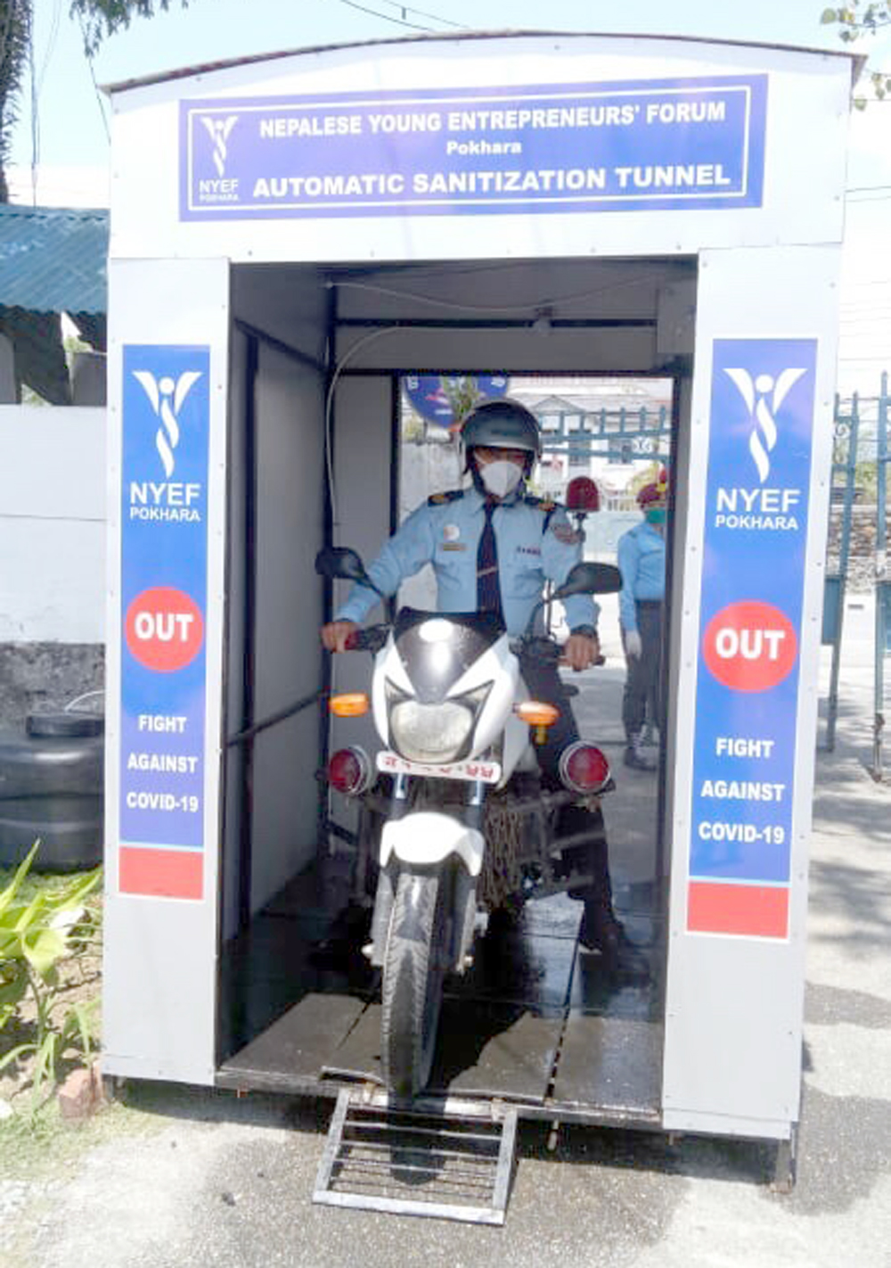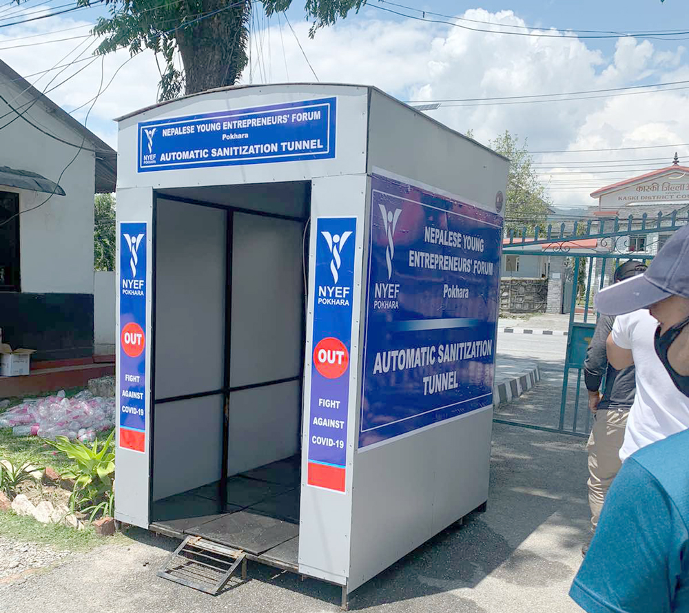 पोखरा । वडा प्रहरी कार्यालय पोखरा वैदाममा सेनिटाइज्ड टनेल निर्माण गरिएको छ । नेपाली युवा उद्यमी मञ्च पोखराले टनेल निर्माण गरी शुक्रबार वडा प्रहरी कार्यालय वैदामलाई हस्तान्तरण गरेको हो ।