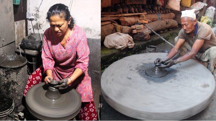 यहाँ आकर्षक माटोको भाडा बनाउने बोलाछेंँ र तालाक्वको पोर्टरी स्क्वायर तथा मध्यपुरथिमिका नगदेश, बोडे, चपाचो, पाँचोलगायतका स्थानका प्रजापति समुदायका पूरै परिवार यतिखेर तिहारका लागि आवश्यक पाला बनाउने, सुकाउने र रङ भर्ने कामबाट एकछिन फुर्सद छैन ।