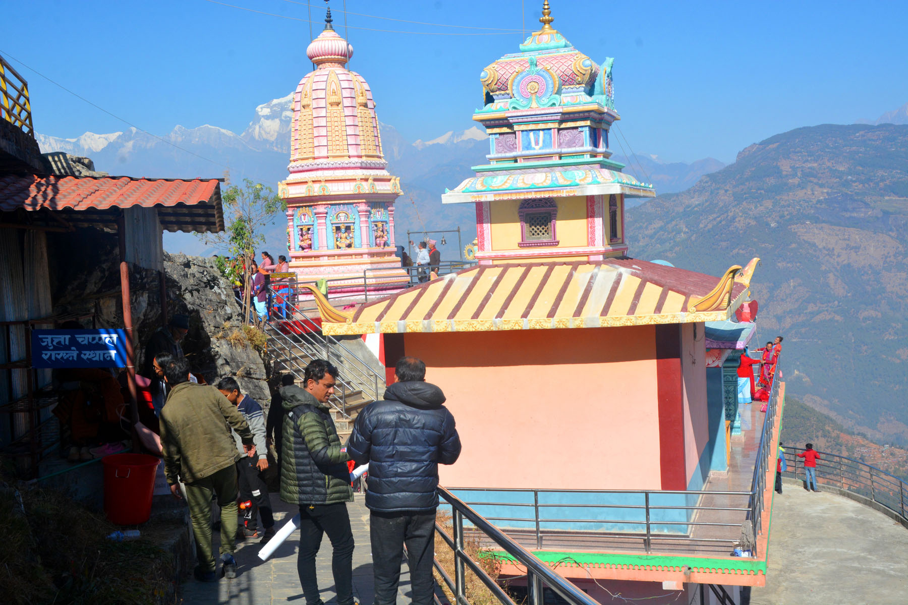 बागलुङ । बागलुङ नगरपालिका–६ स्थित धार्मिक पर्यटकीय गन्तव्यस्थल सर्वसिद्धिधाम पञ्चकोटमा रमाउँदै आन्तरिक पर्यटक । तस्वीर : रामबहादुर थापा, रासस