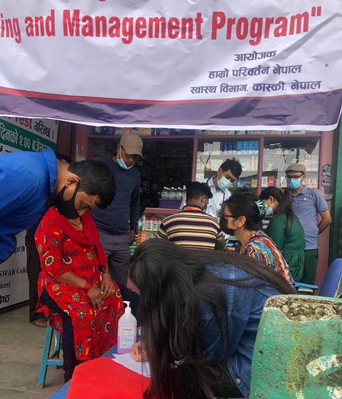 हाम्रो परिवर्तन नेपाल स्वास्थ्य विभागको आयोजनामा पोखरा महानगरपालिका वडा नं ९ मा सुगर र उच्च रक्तचाप निःशुल्क परीक्षण गरिएको संस्थाका सचिव हरि कार्कीले जानकारी दिए ।