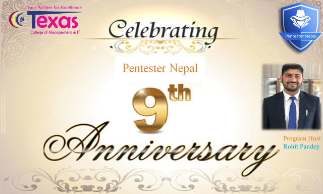 काठमाडौं । पेनटेस्टर नेपालको नवौं वार्षिकोत्सवको अवसरमा शनिबार टेक्सास कलेज अफ म्यानेजमेन्ट एण्ड आइटीमा साइवर सेक्युरिटी सम्वन्धि कार्यक्रम हुनेभएको छ ।