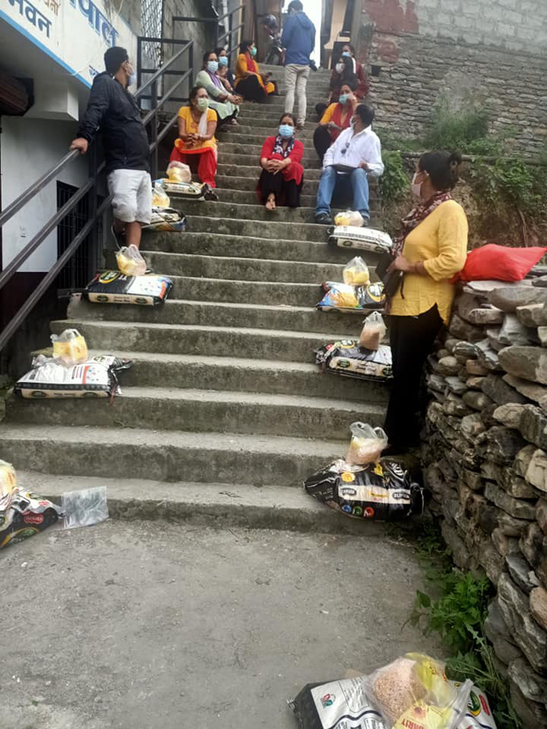 गलेश्वर । कोरोना भाइरस रोकथामका लागि सरकारले गरेको निषेधाज्ञाका कारण रोजगार गुमाएका मजदुरहरुलाई खाद्यान्न सहयोग गर्दै क्षत्री समाज म्याग्दी । समाजले सदरमुकाम बेनीबजारका २३ मजुदुर परिवारलाई दैनिक उपभोग्य सामग्री उपलब्ध गराएको हो । तस्विर: ध्रुवसागर शर्मा,रासस
