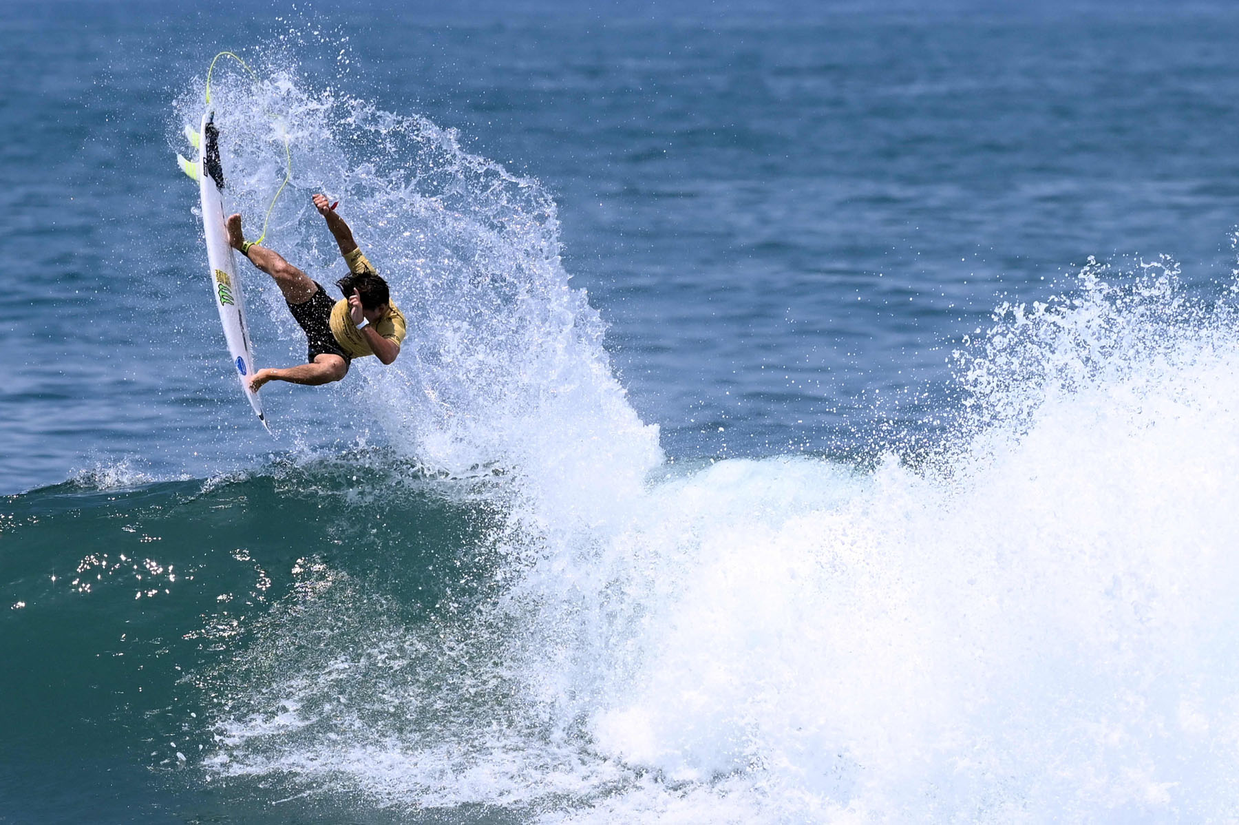 French surfer Jeremy Flores rides a wave in the men’s final during the 2021 Isa World Surfing Games in El Tunco beach, El Salvador, on June 6, 2021.