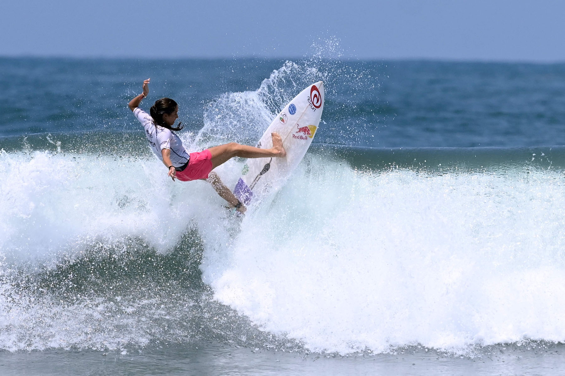 Portuguese surfer Teresa Bonvalot rides a wave in the women’s final during the 2021 Isa World Surfing Games in El Tunco beach, El Salvador, on June 6, 2021. – Sally Fitzgibbons won the championship.