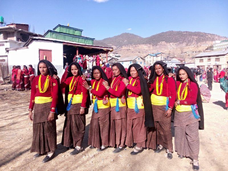 जुम्लाका सामुदायिक रेडियोहरुले १३ औँ विश्व रेडियो दिवसको पूर्वसन्ध्याको अवसर पारेर सामाजिक कुरितीविरुद्ध जनचेतनामुलक देउडा प्रतियोगिता कार्यक्रमका लागि जुम्ली खस वेशभूषा यहाँका महिला सामूहिक तस्बिरमा ।