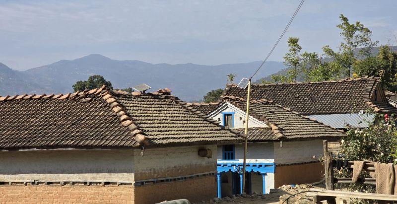 दिप्रुङ चुइचुम्मा गाउँपालिका–१ याम्खास्थित रातमाटामा माटोबाट बनाइएको टायलको छाना लगाइएका घरहरु ।