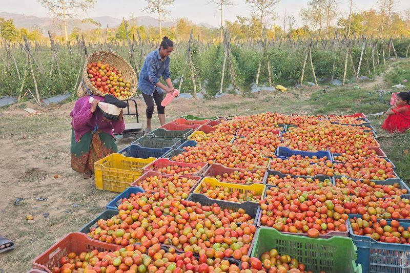 दाङ । दाङको घोराही उपमहानगरपालिका–१६ स्थित तेरौटेमा बिक्रीका लागि बजार लैजान किसानले टिपेर व्यवस्थापन गरेको गोलभेंडा । यहाँ उत्पादित गोलभेंडा दाङमा प्रतिकिलो रु ३० का दरले थोकमा बिक्री भइरहेको छ । तस्बिरः कुलदीप न्यौपाने/रासस