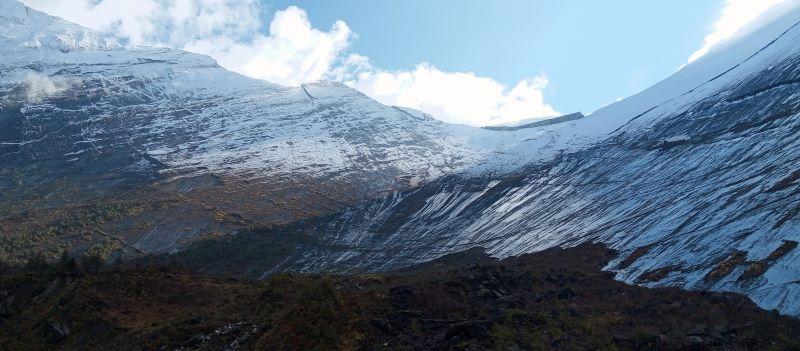 मनाङ । अन्नपूर्ण पदमार्गअन्तर्गत मनाङ ङिस्याङ गाउँपालिका-१ मा अवस्थित हिउँले सेताम्मे भरिएको स्वर्गद्वारी पहाडको दृश्य । तस्बिर: नवीन लामिछाने / रासस